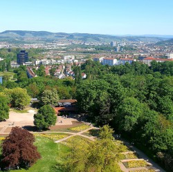 Startpunkt ist der Parkplatz am Tübinger Freibad. Von dort geht es zunächst hinauf zum Schloss Hohentübingen und weiter über Schloss- und Spitzberg