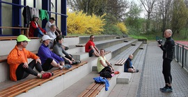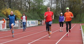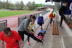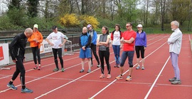 Der Wetterprognose zum Trotz gab es Warmlaufen im Regen, Gymnastik unter dem Tribünendach, so begann das „Lauf-ABC“ 2016. Als es auf die Bahn ging, war und blieb es von oben trocken. Michael Schwab zeigte uns am 16. April einmal mehr Trainingseinheiten, die bewusste Bewegungsabläufe fördern und Verletzungen vermeiden helfen. Die Teilnehmerinnen und Teilnehmer nahmen viele Tipps mit und hatten ihren Spaß. Nicht zu vergessen: die Tipps von Michael zur Nutzung der morgendlichen Zeit zwischen Zähneputzen und Dusche.