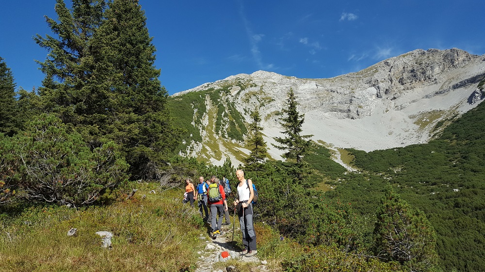In Lermoos angekommen lachte die Sonne vom Himmel! Hungrig nach Gipfelglück stieg die eine Gruppe steil, auf steinigem und anspruchsvollen Pfad 1350 Hm hinauf auf den Daniel und den Ups. Die