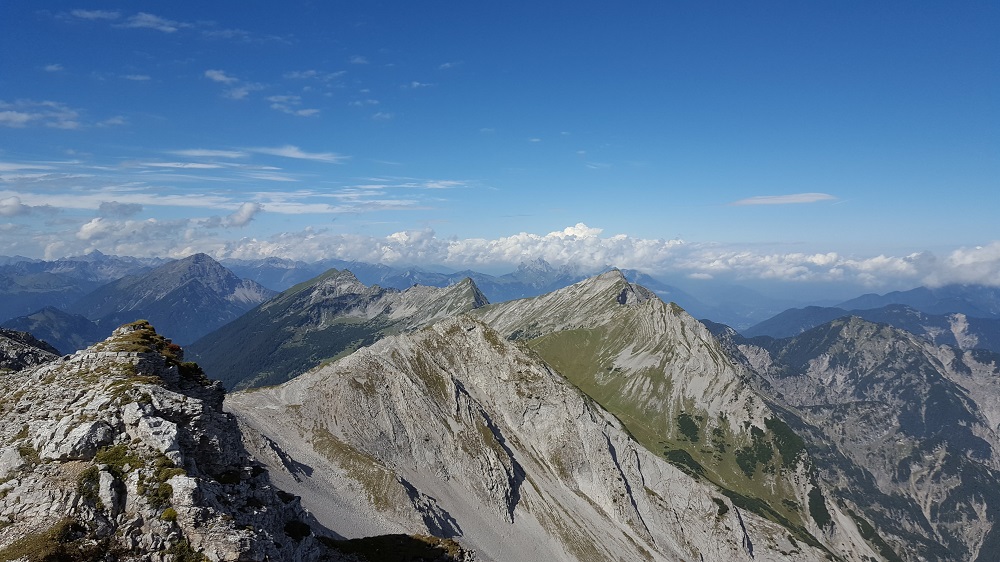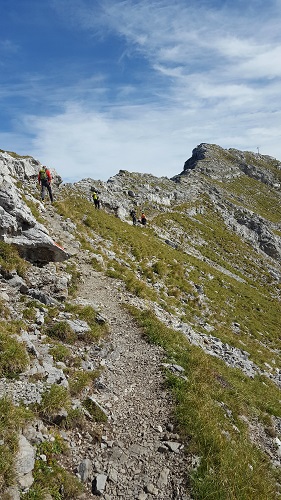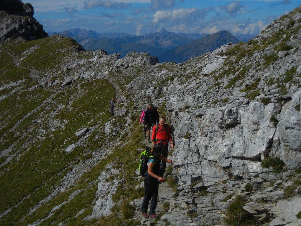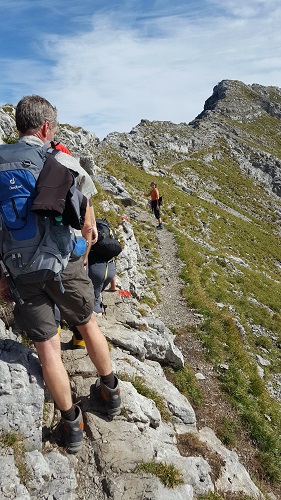 Luft war klar und alle konnten das unbeschreibliche Bergpanorama genießen. Die anderen bewältigten 760 Hm und nach dem schweißtreibenden Anstieg wanderten sie eine halbe Stunde auf dem Grat entlang