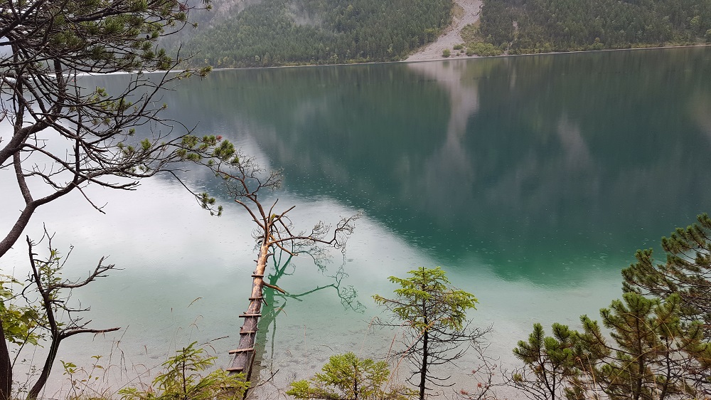Der Ruf der Zugspitze war die ganze Zeit zu hören und so wollten wir wenigstens zu ihren Füßen wandern. Von der Ehrwalder Talstation ging es gemütlich zum Aussichtspunkt Eibseeblick und etwas