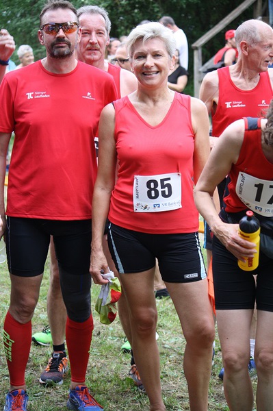 Von den angesagten Gewittern war in Dusslingen zum Glück nichts zu sehen und so starteten alle wie geplant zum Hanneslelauf bei heißen und sommerlichen Temperaturen. In großer Runde konnten wir bei der Preisverleihung ganz oft jubeln: Podestplätze in den Altersklassen, die drittstärkste Mannschaft und einen Sonderpreis beim Walking. Der Mannschaftspreis war ein Korb voll Süßigkeiten, die ruck-zuck unter den Hanneslebezwingern verteilt waren.