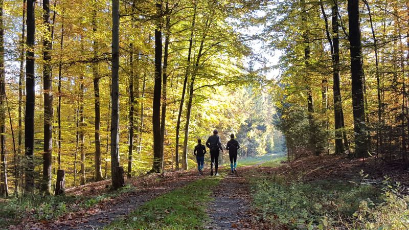 Reichenbach, hoch in den Schönbuch. Unter voller Sonne ging es durch den Herbstwald und das Reichenbachtal wieder zurück. Training und Genuss schließen sich auch über 18 km und rd. 300