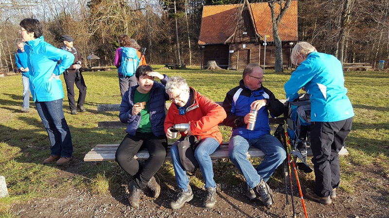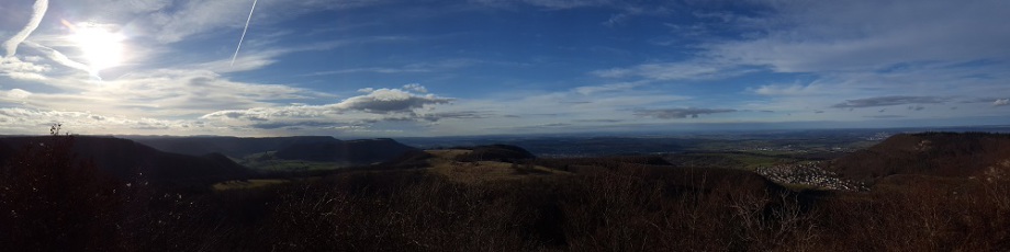 Bei frühlingshaften Temperaturen wanderten wir vom Öschinger Freibad hinauf auf den Bolberg. Die Sicht war herrlich und am Albtrauf vor der Bolberghütte genossen wir das letzte ausgiebige Sonnenbad in 2017. Das Rucksackvesper schmeckte vorzüglich und in Top Stimmung ging es über den Filsenberg und Maisenbühl wieder in Richtung Öschingen. Ein bisschen Adventure sollte nicht fehlen, und statt auf dem Hauptwanderweg nahmen wir einen steilen Stichweg als letzten Abstieg.