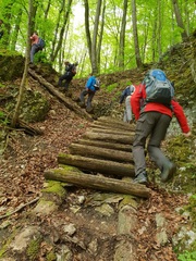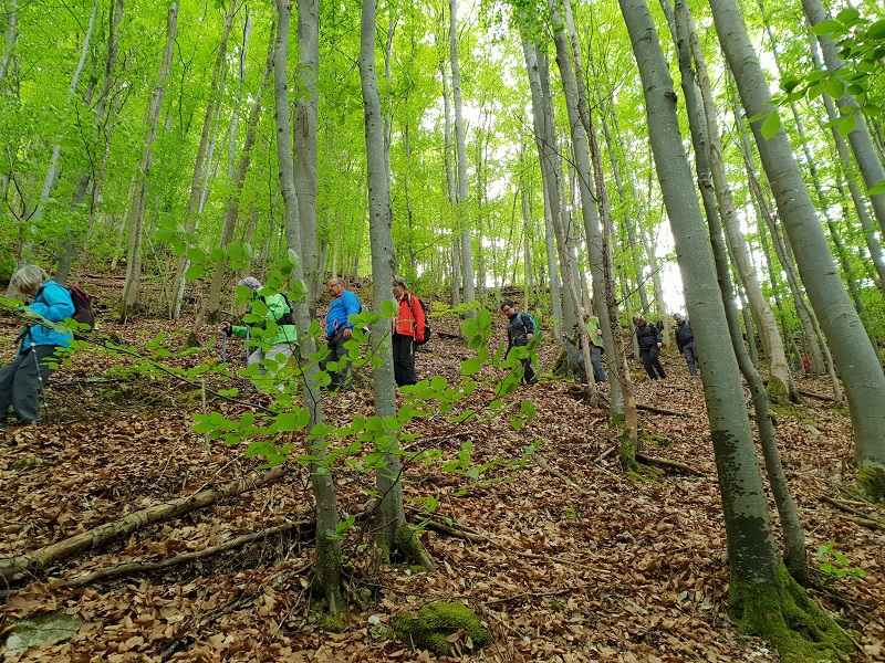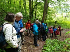 Ein steiler und kehrreicher schmaler Pfad schlängelte sich hinab ins schöne Donntal zum letzten High-light der Tour, die Sinterterassen und die Sinterbecken an der Weißen Lauter bei Gutenberg. Nach 15 Km erreichten die Wanderer gut gelaunt und voller neuer Eindrücke wieder den Ausgangspunkt der Tour, Schlattstall.