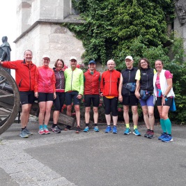 Trotz dunkler Wolken am Himmel trafen sich 9 Joggerinnen und Jogger zum Vollmondlauf auf die Burg Hohenzollern. Wir starteten gemeinsam mit anderen Läuferinnen und Läufern der LG Steinlach-Zollern vom Parkplatz des Hechinger Freibad zum schweißtreibenden 8 km langen Anstieg und den 350 Höhenmetern auf die Burg Hohenzollern.