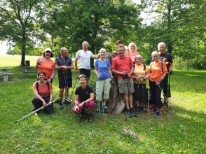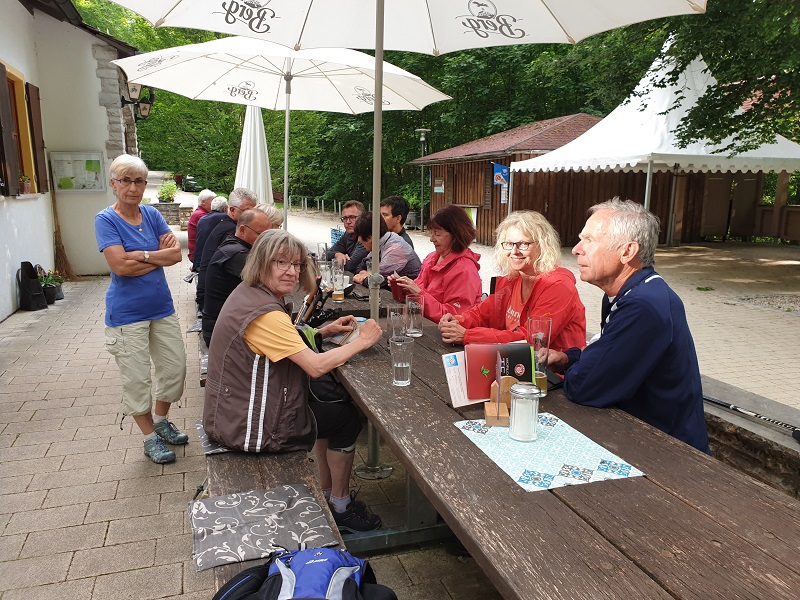 Auf herrlichen Waldpfaden folgten wir dem Verlauf des HW5 am Hinteren Sättele vorbei, über den Won wieder bis zu unserem Ausgangspunkt. Beim Maultaschenwirt genossen wir nach 8,6 km bergauf und bergab kühle Getränke und schmackhafte Gerichte.