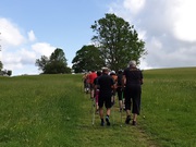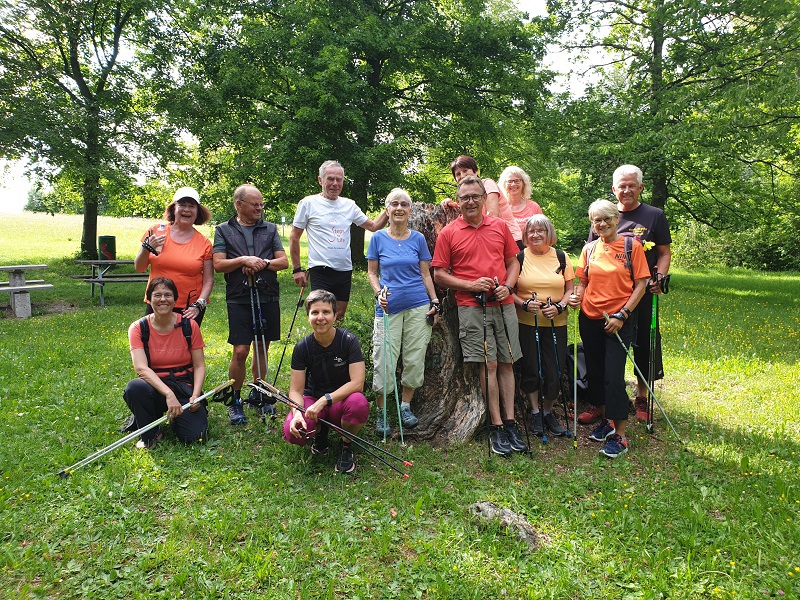 Die Wetterprognose, um 18:00 Uhr mögliche Gewitter, hielt 12 lauffreudige LT Walker nicht ab, am Parkplatz Nebelhöhle ihre Sonderwalkingtour zu beginnen. Guten Mutes ging es an der Höhle vorbei, einen kurzen steilen Weg hinunter bis zu einer Dreiecksgabelung. Wir trafen auf den Unteren Grubenweg, dieser führte uns auf weichem Waldboden, sowie einem schmalen Wiesenweg unterhalb des Won, in Richtung Ruoffseck.