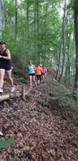 Den schönen Pfad bis zum Hirschkopf und den Abstieg schafften wir noch vor dem Regen. Bei der Trinkpause am Parkplatz Bergrutsch entschieden wir, wegen des nun einsetzenden starken Regens direkt zur Olgahöhe zuzück zu laufen.