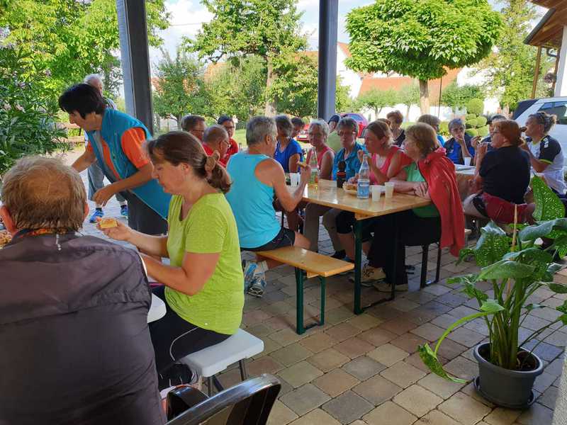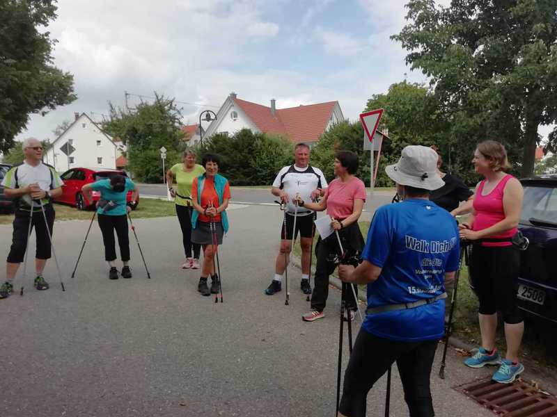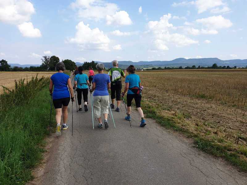 Wir starteten bei herrlichem Sommerwetter am Stockacher Friedhof und walkten zunächst ins Ehrenbachtal, dann in großem Bogen durch den Hartwald und über schöne Feldwege nach Immenhausen.