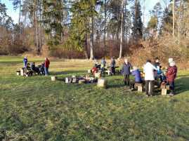Uns Wanderer brachte der Aufstieg zum Grillplatz wieder auf Temperatur. Zur Rast mit jahreszeitlich typischen Getränken und Speisen blitzte die Sonne in die fröhlichen Gesichter.