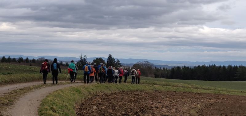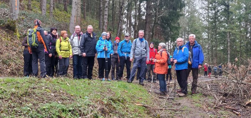 Der Langentalbach beginnt beim Hubertus-Brünnele. Dieser idyllische Platz, mit einem Baum als Naturdenkmal, das eher einem Totholzprojekt gleicht, lud zur Mittagsrast ein. Kurz zeigte sich sogar die Sonne. Vorbei an den Linsenbühlquellen wurde der Priorberg erklommen. Oben auf der Hochfläche, wo uns der Wind die Flausen aus dem Kopf blies, befindet sich der gleichnamige Ort mit etwa 20 Häusern und 2 Gaststätten, die nur wenige Meter auseinander liegen. Der Weg zur außerhalb liegenden St. Josephs Kapelle, ist wesentlich weiter als ins nächste Gasthaus.