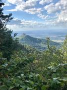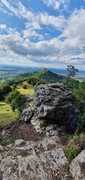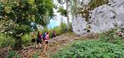 Vorbei an einem riesigen Fels, der vielleicht demnächst ins Tal stürzen wird?