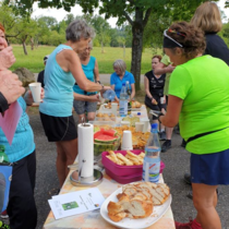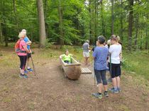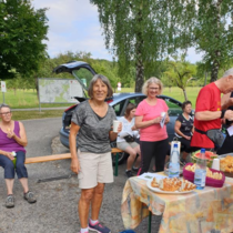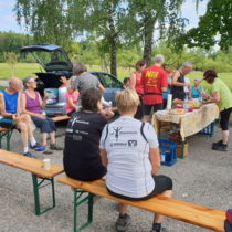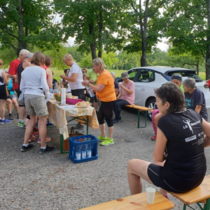Wir starteten bei herrlichem Sommerwetter am Buchbach und walkten bergan Richtung Öschingen. Am Querweg kurz vor den ersten Häusern genossen wir einen wunderschönen Ausblick auf Gomaringen und Umgebung. Dann ging es weiter zur Waldbadewanne unter den Mammutbäumen. Dort lauschten wir einer zu diesem Waldstück passenden Geschichte. Wieder zurück am Buchbachparkplatz erwarteten uns hergerichtete Sitzbänke, erfrischende Getränke und viele herzhafte und süße Leckereien.