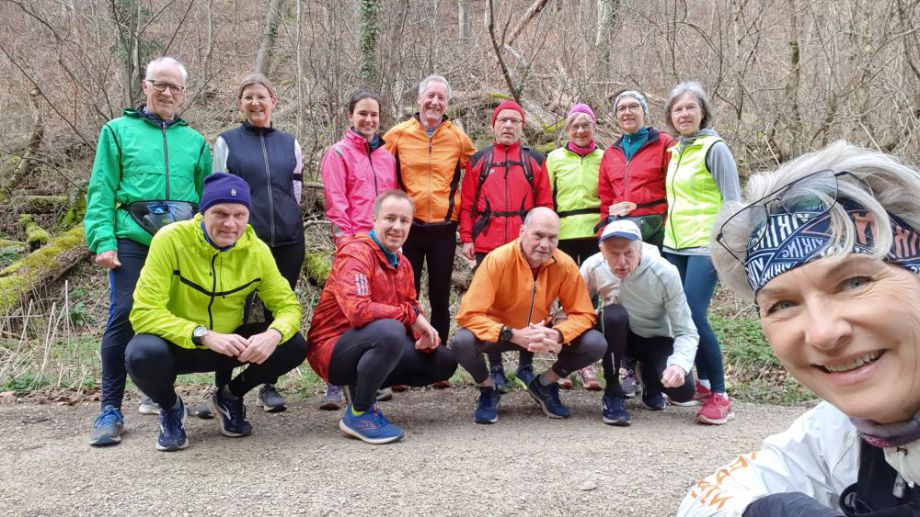 In Summe trafen sich 14 (einer fehlt leider auf dem Foto) Laufbegeisterte am Sonntagmorgen um die Trails und Waldwege zum Barmkapf, den Stöffelsberg und Wackerstein zu erklimmen. Über die Pfullinger Hochwiesen konnten sich die Beine dann etwas erholen bevor man das Gipfelkreuz des Wackersteins in Angriff nahm. Der Rückweg durchs Ramsteltal war zum Schluss dann schon fast wie Erholung, nach den Aufstiegen im ersten Teil der Strecke. Bei den Gönninger Seen wurden dann noch schnell die Schuhe gesäubert, da der Weg zum Parkplatz von der Wiesaz überschwemmt war. Fazit: Ein wunderschöner Genusslauf am Sonntagmorgen, bei dem alle Sinne auf Ihren Genuss kamen.