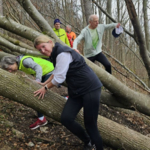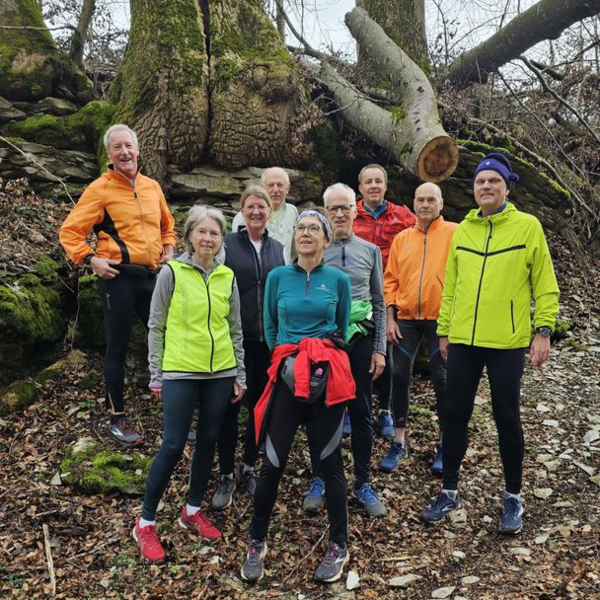 ...13 Walkingbegeisterte machten sich auf, die Runde zu bewältigen, wobei die kürzere Variante ohne den Bogen zum Wackerstein völlig ausreichte. Alle hatten viel Spaß auf der abwechslungsreichen Strecke, auf den Anstiegen kamen wir ins Schwitzen, die Pfullinger Wiesen waren zum Genießen und beim Überklettern von umgestürzten Bäumen und dem doch sehr rutschigen Abstieg ins Ramsteltal kam auch noch etwas Abenteuer dazu.