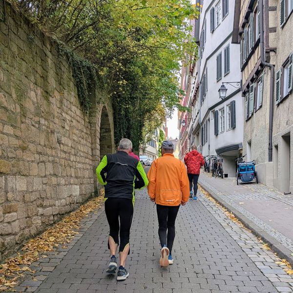 Das Thermometer zeigte lediglich 4 °C – nicht gerade warm, aber was soll’s: Der Kapellenlauf stand schließlich im Kalender. In Tübingen angekommen, schnürten wir direkt die Laufschuhe und liefen los, um auf Betriebstemperatur zu kommen – was auch erstaunlich schnell gelang.