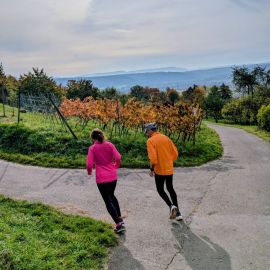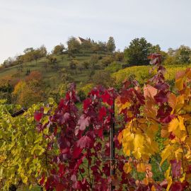 Oben an der Wurmlinger Kapelle genossen wir die herrliche Weitsicht ins Neckartal, bevor es durch die herbstlich leuchtenden Hirschauer Weinberge wieder zurück zum Ausgangspunkt ging.